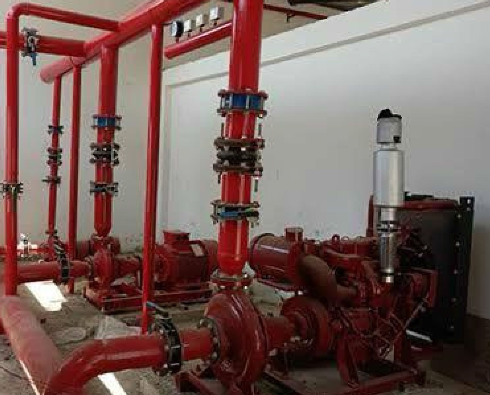 Industrial-grade pump assemblies and pipeline systems were installed to ensure high-capacity fire suppression readiness. Ceiling-level piping layouts were precisely aligned with architectural and structural components to maintain aesthetics while ensuring full coverage safety compliance.